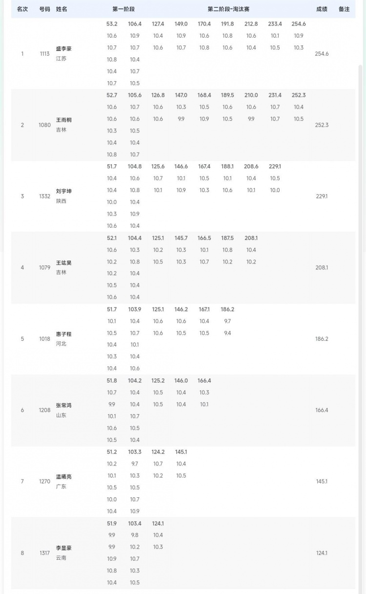 盛李豪代表江苏队出战全运会射击男子10米气步枪项目,最终他以254.6环的成绩获得金牌,吉林队王雨桐以252.3环的成绩获得银牌,陕西队刘宇坤以229.1环的成绩获得铜牌。