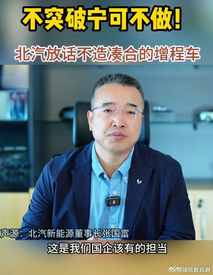 增程技术不突破宁可不做 北汽放话不造凑合的增程车 增程车的核心就是既要里程够,又