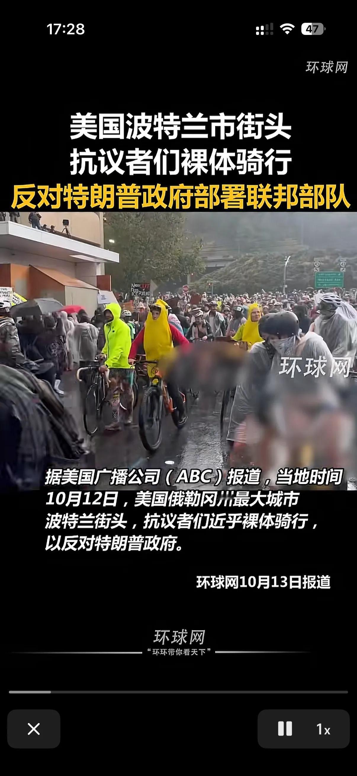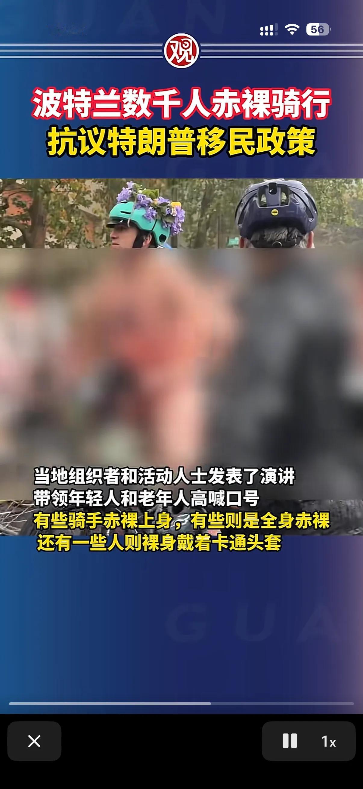 该说不说美国波特兰这地方一定是有什么说法的! 我发现波特兰这地方的人总能弄出点新闻来,尤其是擅长让特朗普领导下的美国政府难堪! 前一阵波特兰的一些激烈游行者就公然和美国警察对抗,甚至是阻止美国移民执法机构抓捕非法移民! 以至于让美国美女国土安全部长大发雷霆的说,你们要是管理不好自己,那我就派人去帮你们,看谁还敢非法拒捕和影响警方办案。 一看硬的不行就来软的恶心人了! 波特兰有人组织裸体骑行,没错就是赤身裸体的骑行,其中人数还不少,有上千人响应这次裸体骑行,他们要么上身穿着清凉,有的上身赤裸,有的干脆全身赤裸的围绕移民拘留中心和波特兰的市政广场骑行! 抗议特朗普的驱逐非法移民的举动!
