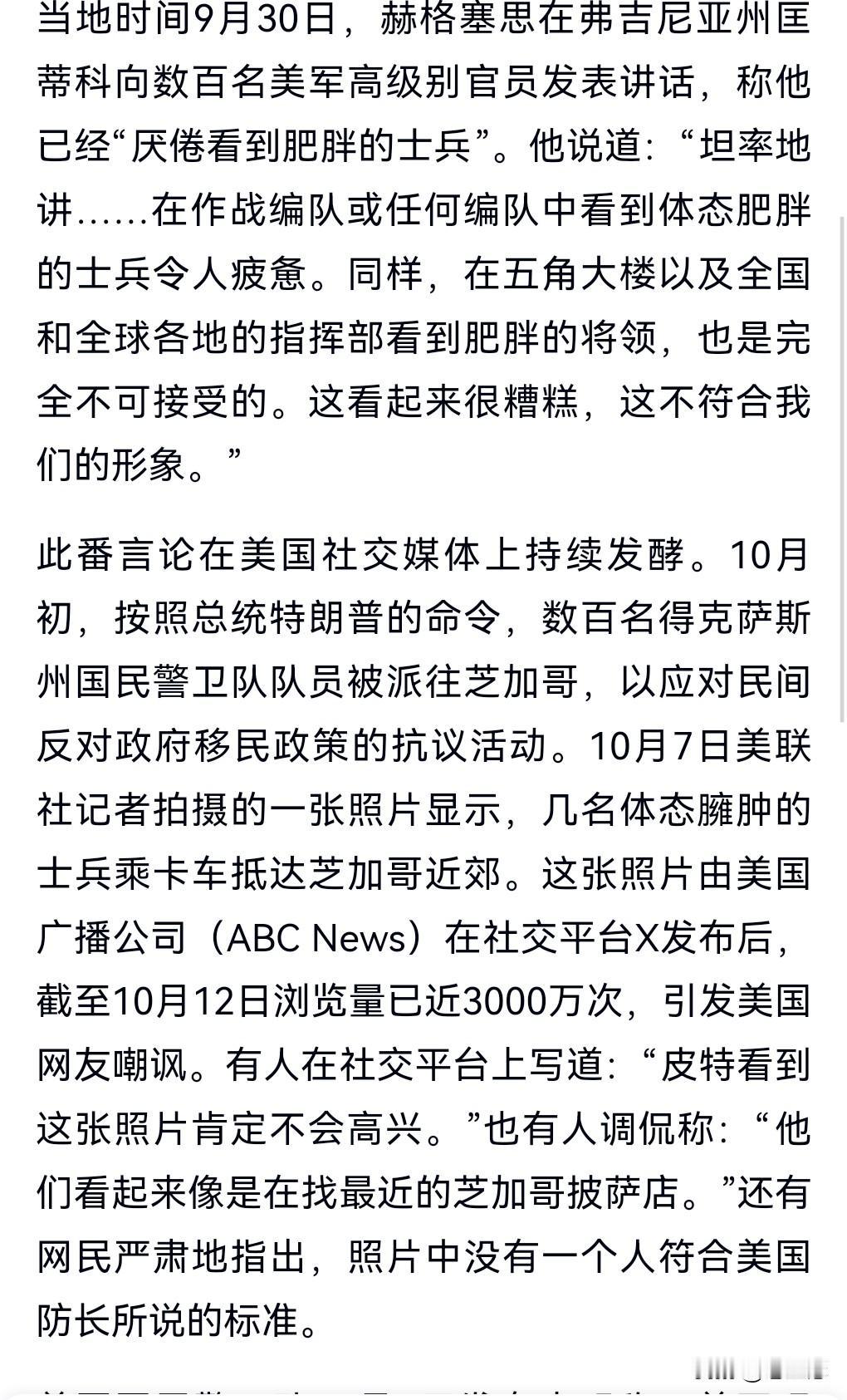 这样的形象实在是太糟糕了。 这可是美军士兵的形象,想不到竟然有这么多胖子。 给人