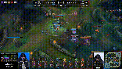 虎扑10月14日讯IG对阵T1次局,IG众将拉扯中应对Faker阿卡丽,中路0换2击杀T1上野