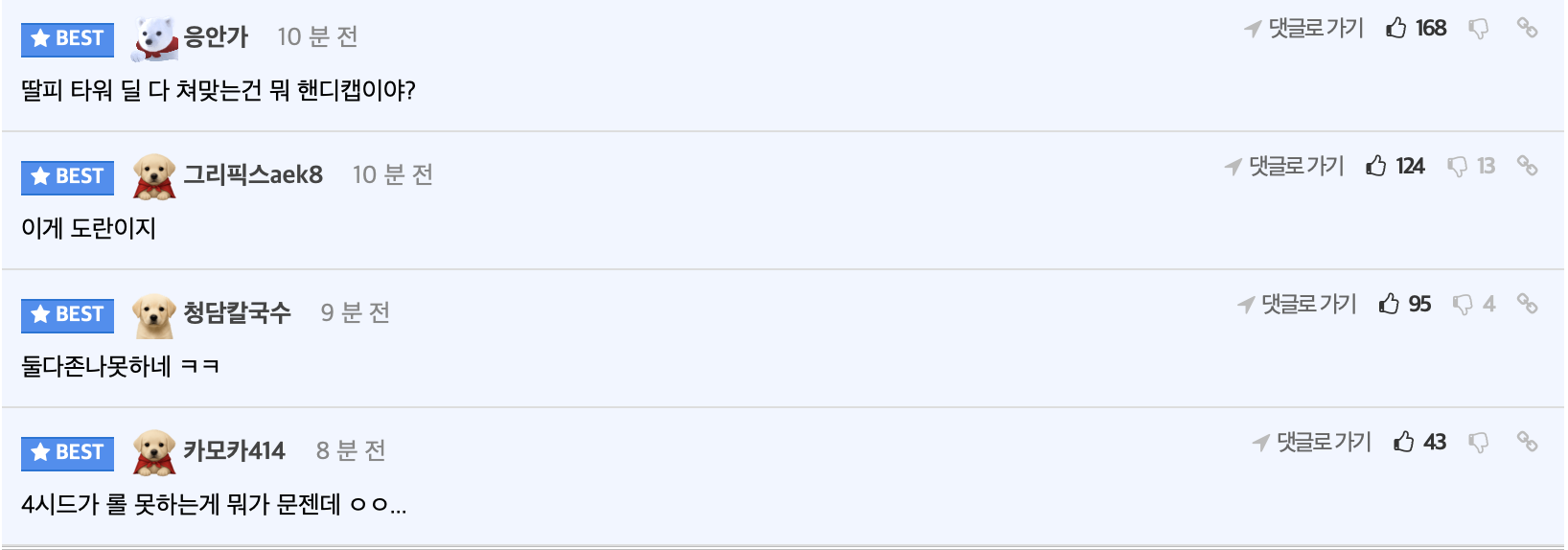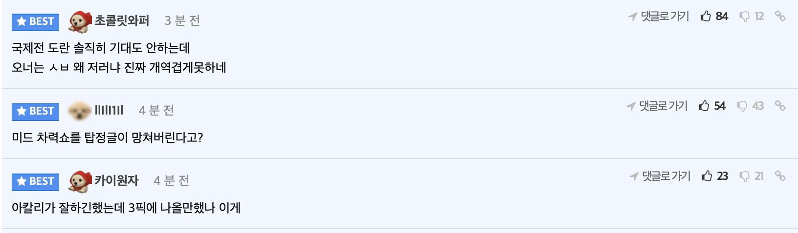 虎扑10月14日讯2025英雄联盟全球总决赛入围赛iGvsT1第二局,iG追回一局,韩国论坛FMKOREA网友对此展开热议,部分热门评论翻译如下: