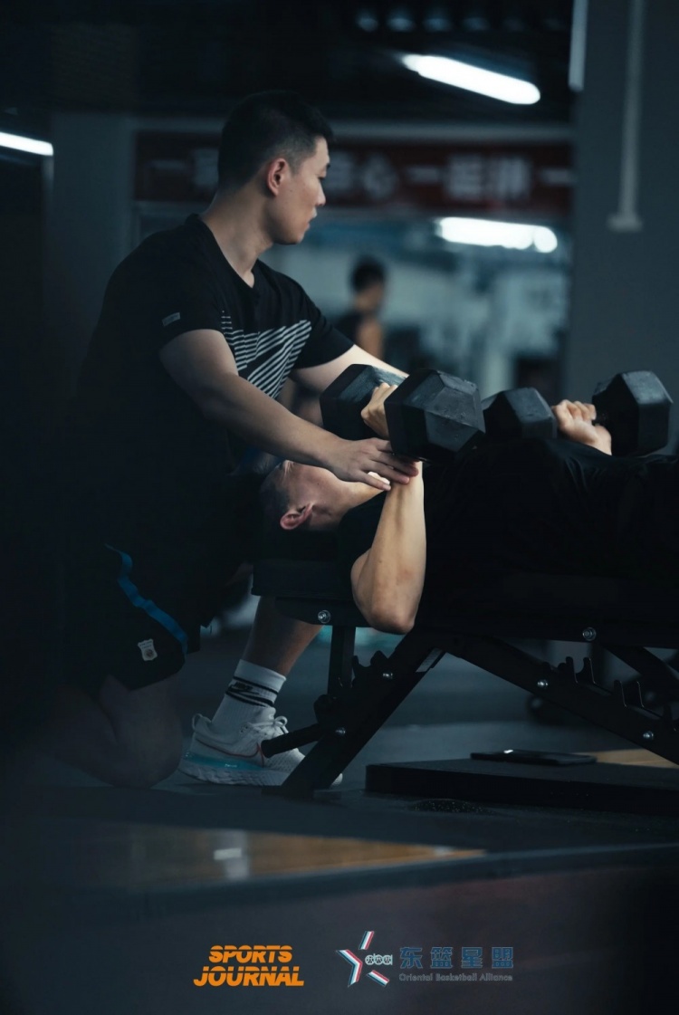 照片中崔永熙进行了有球训练和力量训练,非常卖力。