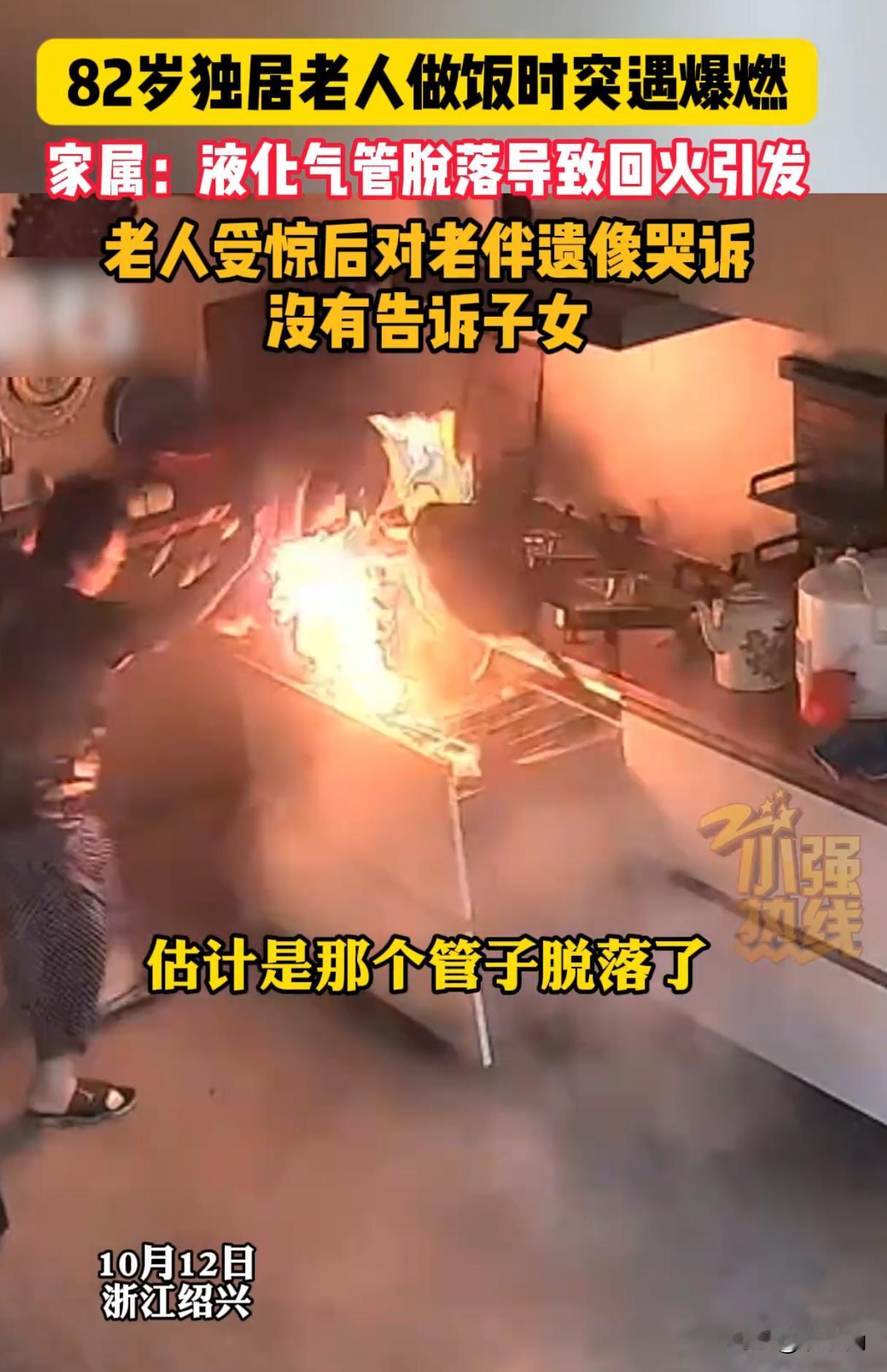 82岁老人对着遗像哭诉的视频,你刷到了吗?浙江这位独居奶奶,灶台突然爆炸,手臂被