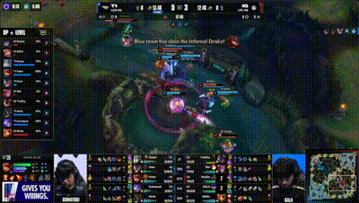 比赛第18分钟,两队爆发小龙团。T1打出0换3大胜拿到听牌龙