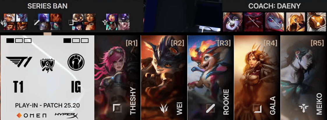 IG选用:TheShy兰博、Wei蔚、Rookie彗、GALA斯莫德、Meiko蕾欧娜