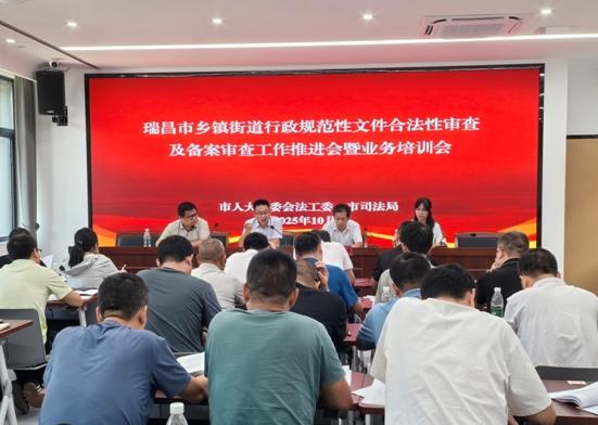 为深入贯彻落实全市推进合法性审查全覆盖工作的部署要求,进一步规范基层行政决策行为,2025年10月11日,瑞昌市司法局与市人大常委会法工委联合召开全市乡镇(街道)行政规范性文件合法性审查及备案审查工作推进会暨业务培训会。