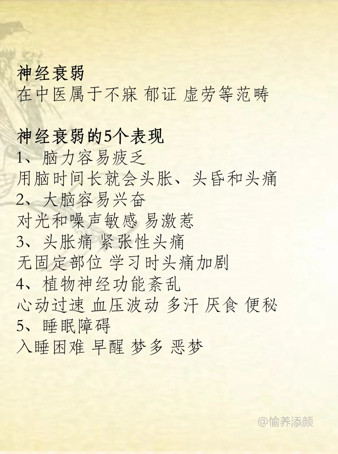 中医 神经衰弱 神经性头痛 植物神经紊乱 失眠 头胀 头痛 中医养生 拒绝精神内枆 战胜焦虑和抑郁