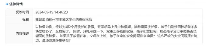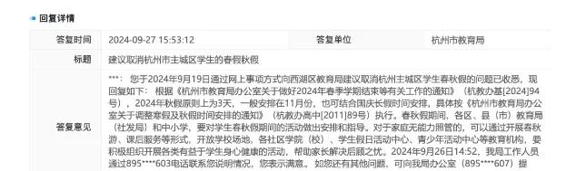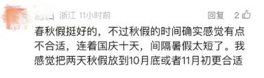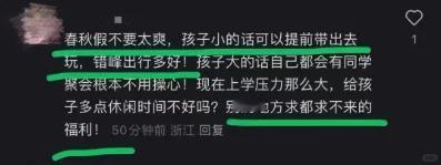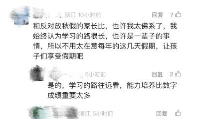 春假秋假,其实20年前就有了 杭州中小学这波秋假爽了,连上国庆假期,足足有10天。但家长不满意了,直接一封《建议取消杭州市主城区学生的春假秋假》信件,把浙江省的春秋假推上了热搜。 春秋假,其实20年前就有了。“春秋假”,听起来像个时髦词。其实杭州已经实行10多年了。之前杭州春假有7天,秋假有7天,加上五一和十一假期,春秋假是各有14天。土生土长的杭州人开起了玩笑:“怎么到我自己孩子读书,春秋假都只有3天,错峰旅行都不够用了!” 更早些,大概2000年,我还在读初中,我表哥刚到天津读大学。那时候,天津的所有大学在10月就会放一次长达10几天的春秋假,当时是为方便学生回家帮忙收割庄稼。那会儿,还没十一长假的概念,独居天津的表哥就觉得这十来天特别长,总邀请我们几个表妹去天津玩。 可我们呢?想去也去不了呀!中学生上着课,做着题,哪有什么空下来的时间呀!表哥在电话里说得我们心痒痒,在信件里写得我们心向往之,但我们的脚步却动弹不得。那份遗憾,至今想起来还是酸溜溜的。没想到二十多年后,这个词再次成了热点,只是这次主角换成了今天的中小学生。父母进化论