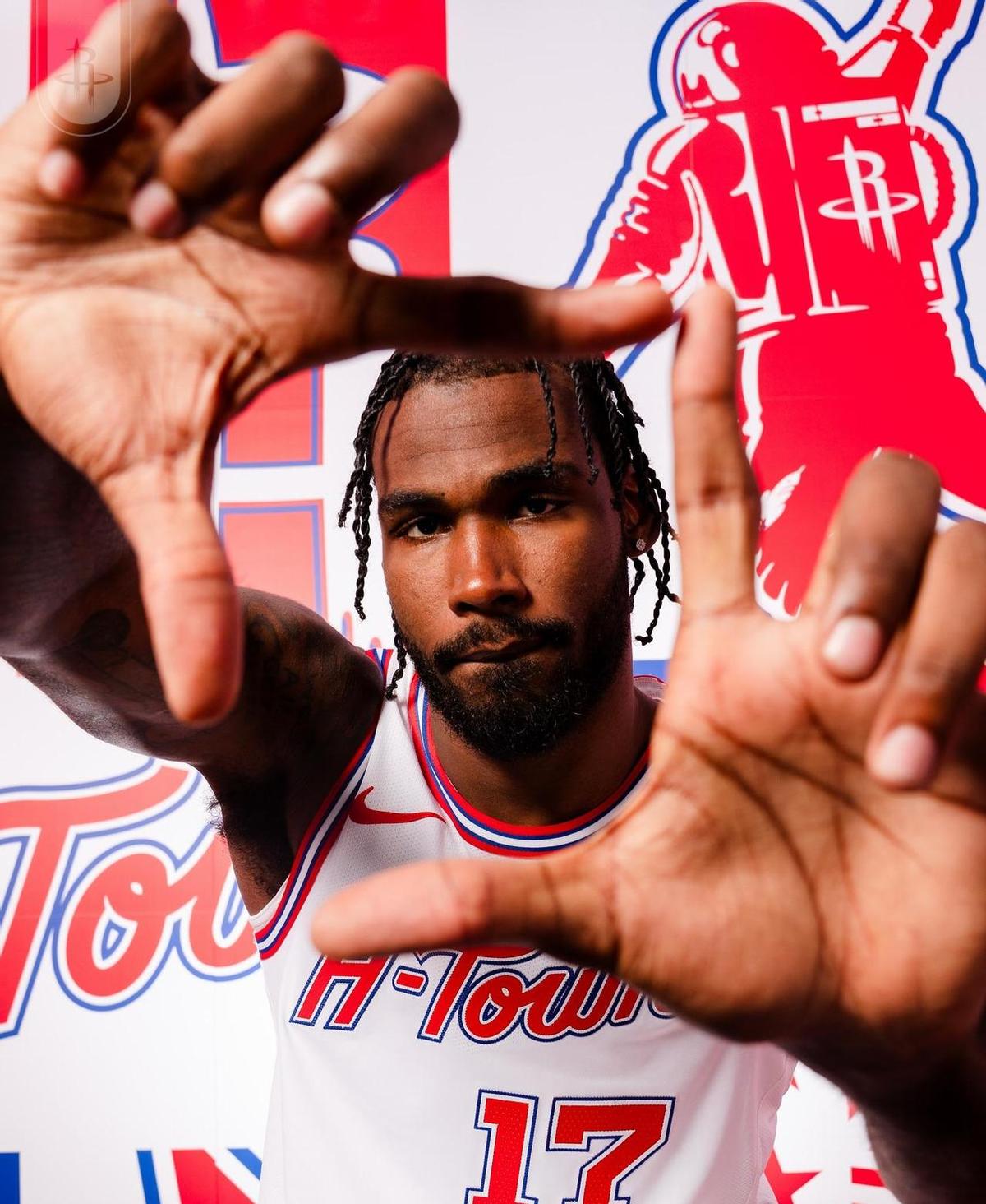杜兰特没来打球,但把整个休斯顿的空气都带重了。 那件城市版球衣,不是印花,是航天器涂鸦+街头 graffiti 炸出来的魂。 他蹲在LED光轨边,手把手教申京怎么转圈不晕,教阿门别看镜头,看光。 不是客串,是传火。 8000件,每件背后有“KD PT”编号,卖的钱全给娃们看火箭升空。 不是营销,是把梦想焊进球衣里,让穿它的孩子,以后能指着天说:我小时候,穿的就是这身。 火箭没说“重建”,他们说“验收”。 感恩节前赢七成,篮网那个首轮签就不是筹码,是炸药包。 博格丹、科林斯,名字已经列在备忘录里了。 年轻人在拍球衣,管理层在算胜场。 这不是未来可期,是现在就要赢。 你穿的不是球衣,是倒计时。 倒数到1,就是他们冲西决的起点。