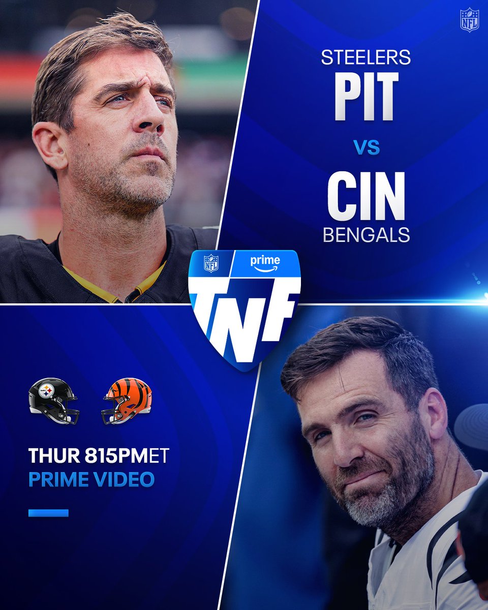 NFL官方X账号发推特报道,周四晚间橄榄球迎来叔侄大战钢人对阵猛虎——北京时间周五上午8:15在PrimeVideo直播同时在@NFLPlus平台同步流媒体播放