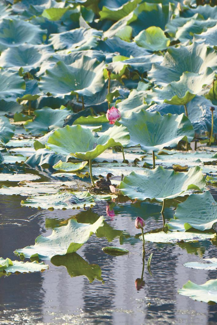 近日,秀洲公园池塘内,水禽栖息在硕大的荷叶下,似乎期盼着初秋的清凉。微风拂过池塘,荷花轻轻摇动,这里多了几分恬静与凉爽。■摄影记者王蓉