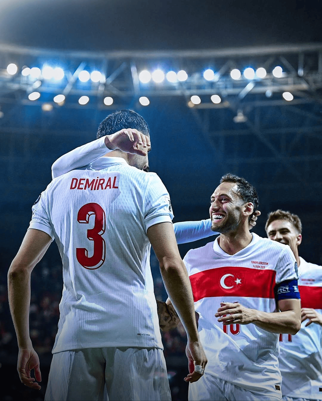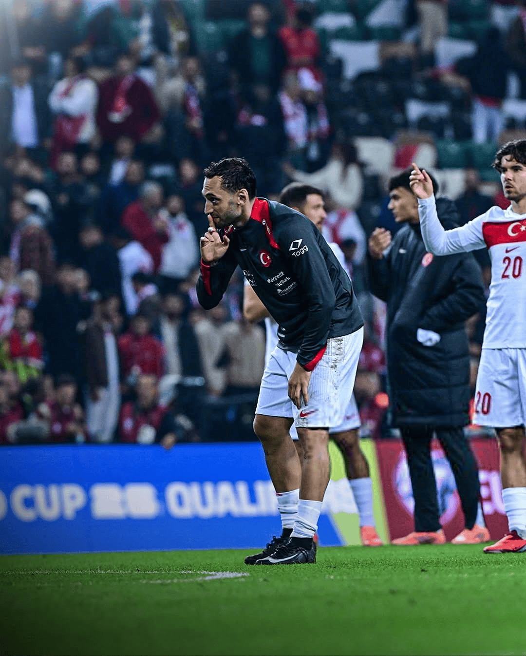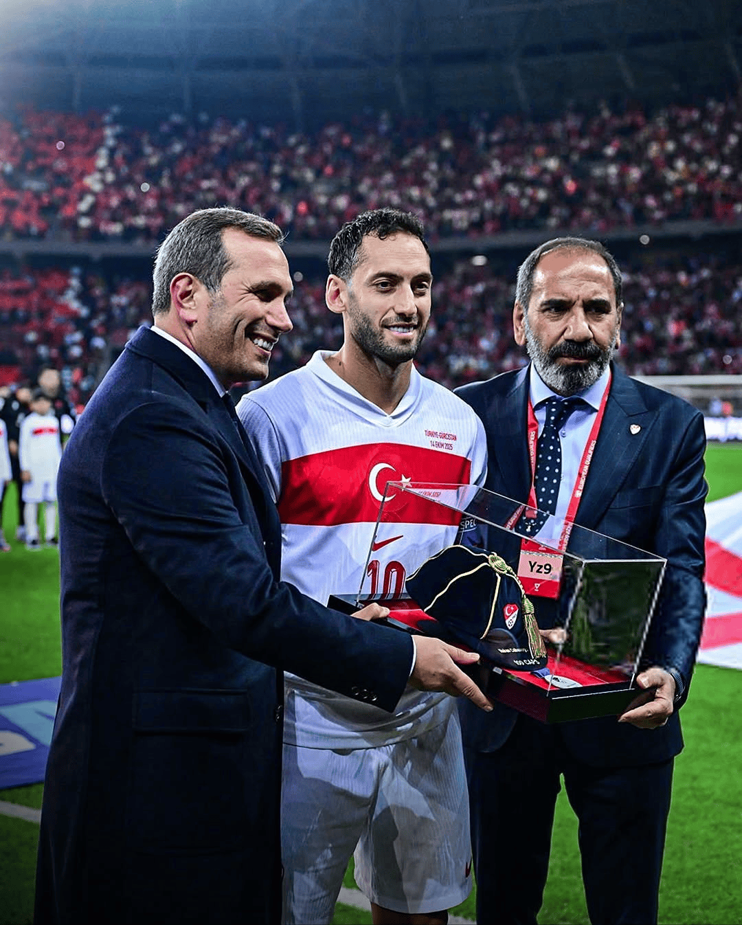 虎扑10月15日讯在2026年世界杯欧洲区预选赛中,土耳其主场4比1击败格鲁吉亚。赛前,球队特意为队长恰尔汗奥卢举行了简短仪式,庆祝他代表国家队出战第100场比赛的里程碑时刻。