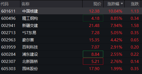 建筑板块拉升 中国核建涨停