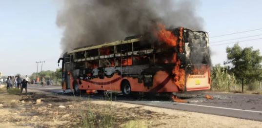 据印度媒体报道,印度西部拉贾斯坦邦一辆长途客车14日在行驶中起火,造成20人死亡、16人受重伤。