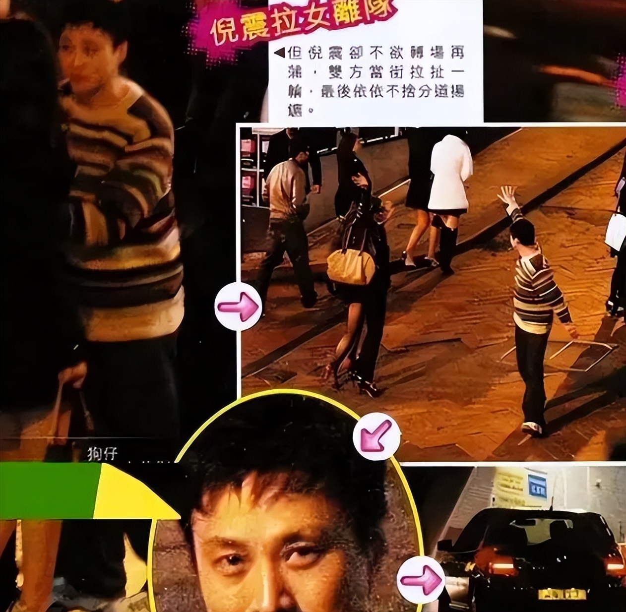 最出圈的一次,是2008年,港媒拍到倪震在兰桂坊酒吧,和21岁的城市大学女学生张茆搂腰激吻,整整20分钟,高清照片连两人的表情都看得一清二楚,消息一出,全网炸锅。