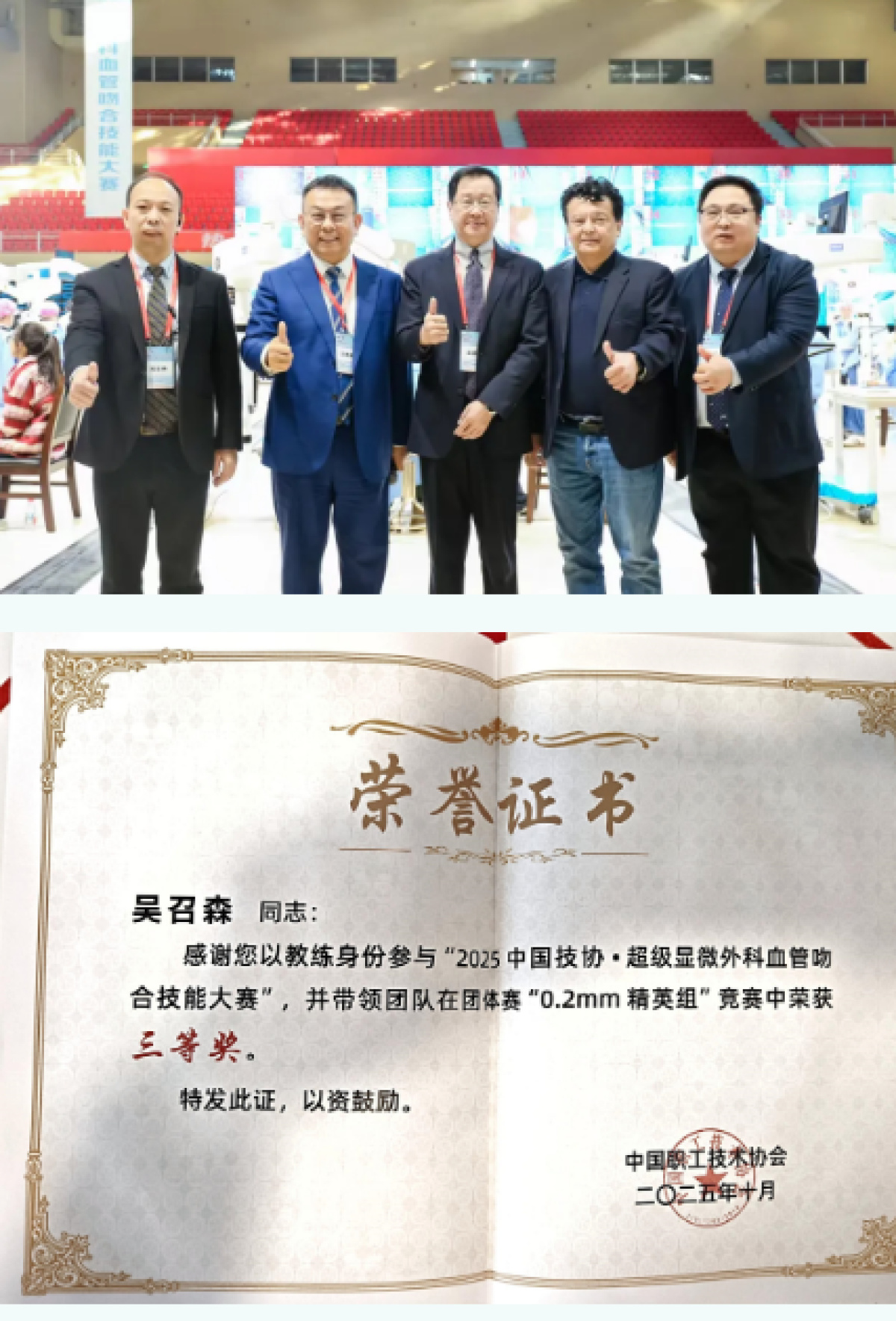 10月6日,由中国职工技术协会主办的2025中国技协·超级显微外科血管吻合技能大赛在新疆乌鲁木齐圆满举办。郑州仁济医院在全国显微外科领域再展雄风,由中华医学会显微外科学分会常务委员侯建玺院长带队,吴召森副院长担任教练,邵高升、吴军庆、李胜军、杨森、王存保、陶祺彬6名青年医师组成的精英团队,不仅以精湛技艺折服评委,更以无私奉献保障赛事,彰显了医院在全国显微外科领域的重要地位,也展示了仁济人的风采。