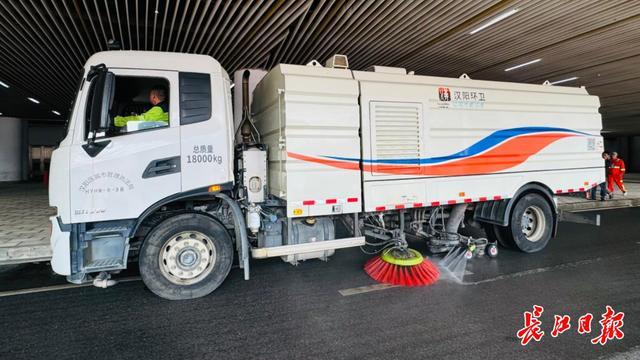 长江日报记者现场看到,一台名为“小蜜蜂”的自动驾驶清扫车外形萌趣,体型紧凑,具备清扫和降尘双重功能。