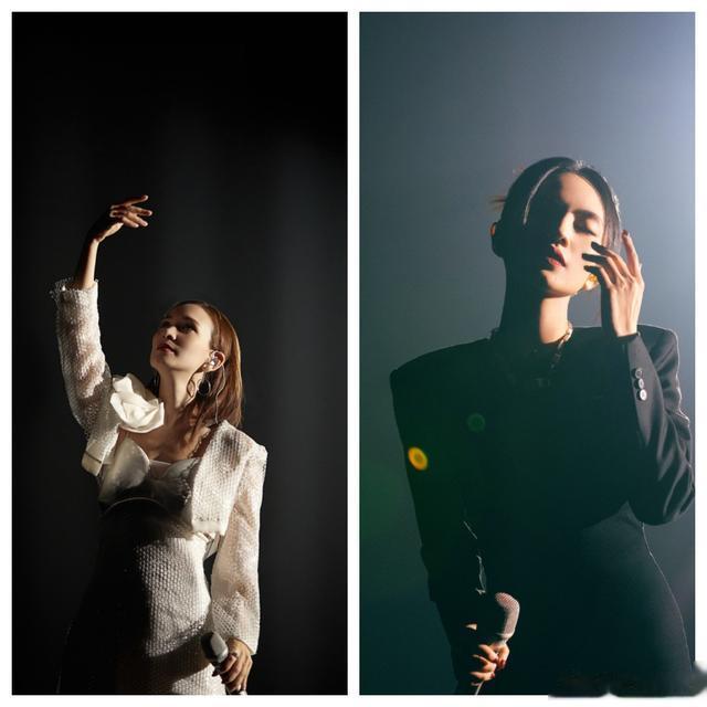 卢靖姗、刘惜君带来《吻别》。最简单的舞台装饰,只有追光灯和提前拍摄的VCR投影,却最有氛围感。中英文的对唱,黑白服饰的反差,刘惜君的抒情,卢靖姗的直白,相映成趣。