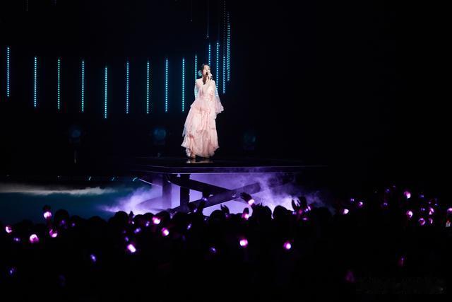 简单的干冰,制造不简单的氛围。简单的肢体动作,不简单的走位。最后的情绪爆发式演唱,聚光灯下的她们跟幕墙上的自己完美融合,你中有我,我中有你。歌好听,情绪到位。