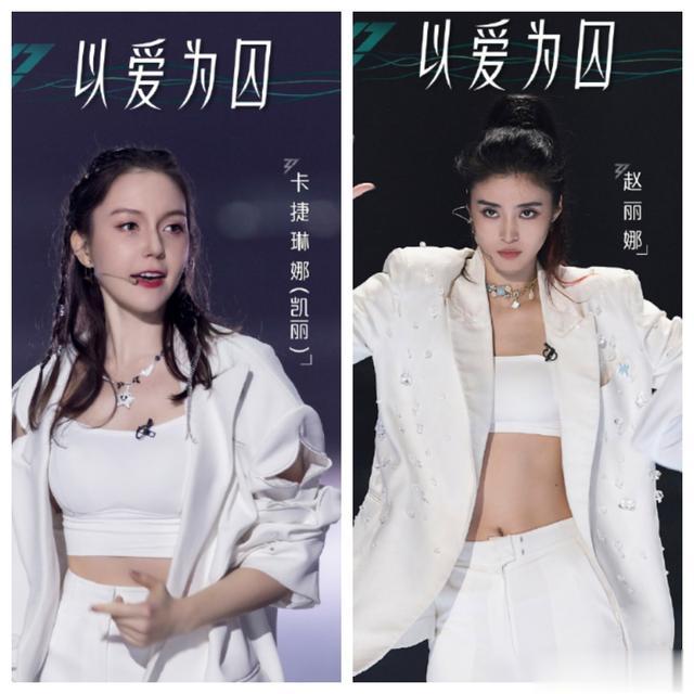 汪小敏、蔡少芬、赵丽娜、卡捷琳娜(凯丽)带来《以爱为囚》。她们的服饰是最没特色的,无感。说回表演,集体的舞蹈动作,设计的机械呆板,双人舞的设计,感觉没啥必要。