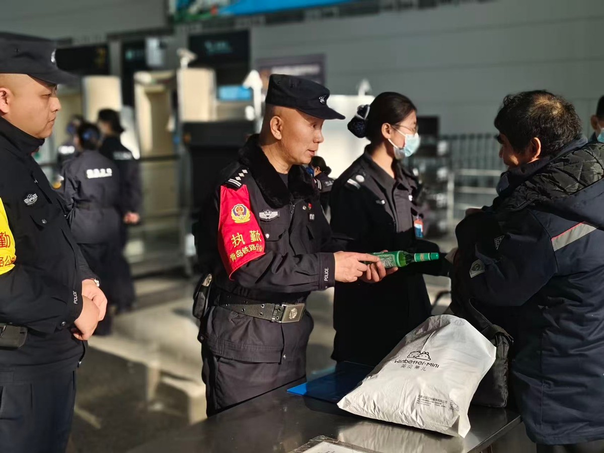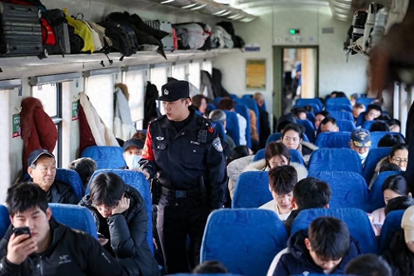 为确保春运期间铁路站车线治安秩序稳定,青岛铁路警方将把警力最大限度摆在面上,科学安排警力,通过特警及警犬小分队巡逻、视频监控盯守、便衣民警防范等形式,加强站区巡查;春运首日青岛铁路公安警用AI机器人首次公开亮相,警用AI机器人日常可在站区开展巡逻,通过AI算法实时识别辖区内的治安隐患与重点嫌疑人员,实现智慧防控;同步加大对铁路沿线的巡查力度,对重点行车设施设备等进行重点看护,落实安全措施;加强列车巡查,对重点列车、重点运行区段等进行重点防范。2026年2月3日,在D2122次列车上,一旅客因醉酒滋事被乘警依法处置。