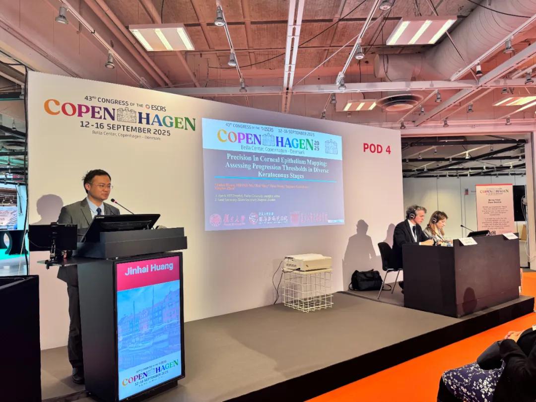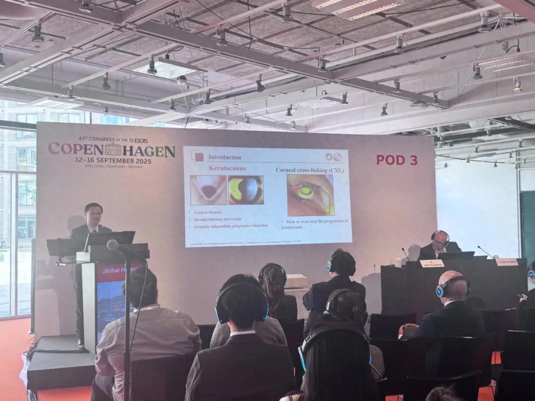 近期,第43届欧洲白内障与屈光外科医师学会年会(ESCRS 2025)在丹麦哥本哈根盛大举行。作为全球眼科领域极具影响力的学术盛会,此次会议吸引了众多国际顶尖专家与学者齐聚一堂,共探行业前沿动态。会议上,复旦大学附属眼耳鼻喉科医院黄锦海教授携团队最新研究成果精彩呈现。其研究聚焦圆锥角膜和角膜交联领域,为该领域的发展提供了新思路,为全球患者带来新的希望,获国际同行广泛关注与认可。