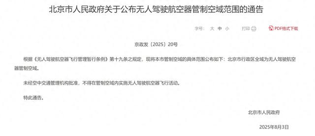 根据8月3日北京市人民政府关于公布无人驾驶航空器管制空域范围的通告