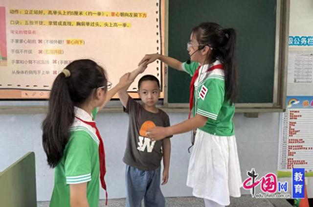 高年级各中队则在辅导员老师的带领下,重温入队誓词与队章知识,进一步加深对少先队组织的理解和热爱,强化了作为少先队员的责任感与使命感。