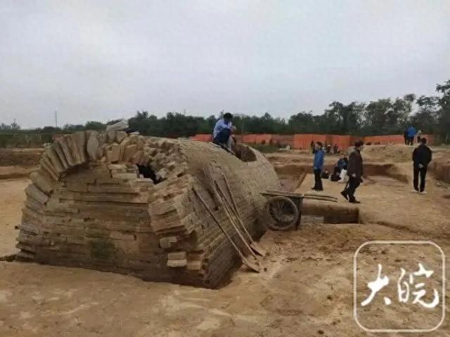 据当地村民介绍,此地原先是个土包,土包下面是农田,从土包往下清理了三四米高的土层,东侧大墓的墓顶才显露出来。