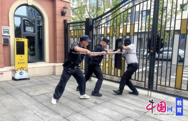 演练中,一男子以“找孩子”为由试图强行闯入园区,门卫第一时间按下一键报警装置,手持防暴盾、钢叉等器械奋力阻拦,发出“警报信号”。各班级老师迅速反应,立即关闭门窗、用桌椅加固门体,轻声安抚幼儿情绪,引导孩子们弯腰抱头躲到课桌下、储物柜后等安全区域,避免暴露身体。最终,在安保人员的配合下,“歹徒”被成功制服,整个演练过程紧张有序。演练结束后,本次演练总指挥对活动进行总结,再次向教职工强调防暴应急的关键要点,也用趣味互动的方式,帮孩子们巩固了自救技巧。