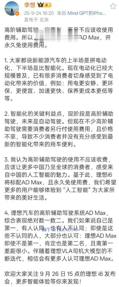 相关阅读:李想:高阶辅助驾驶一定要有,不应该收费