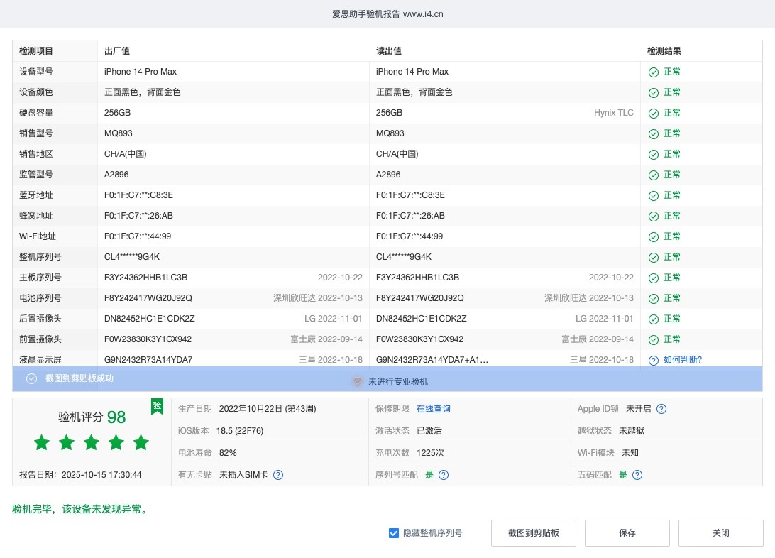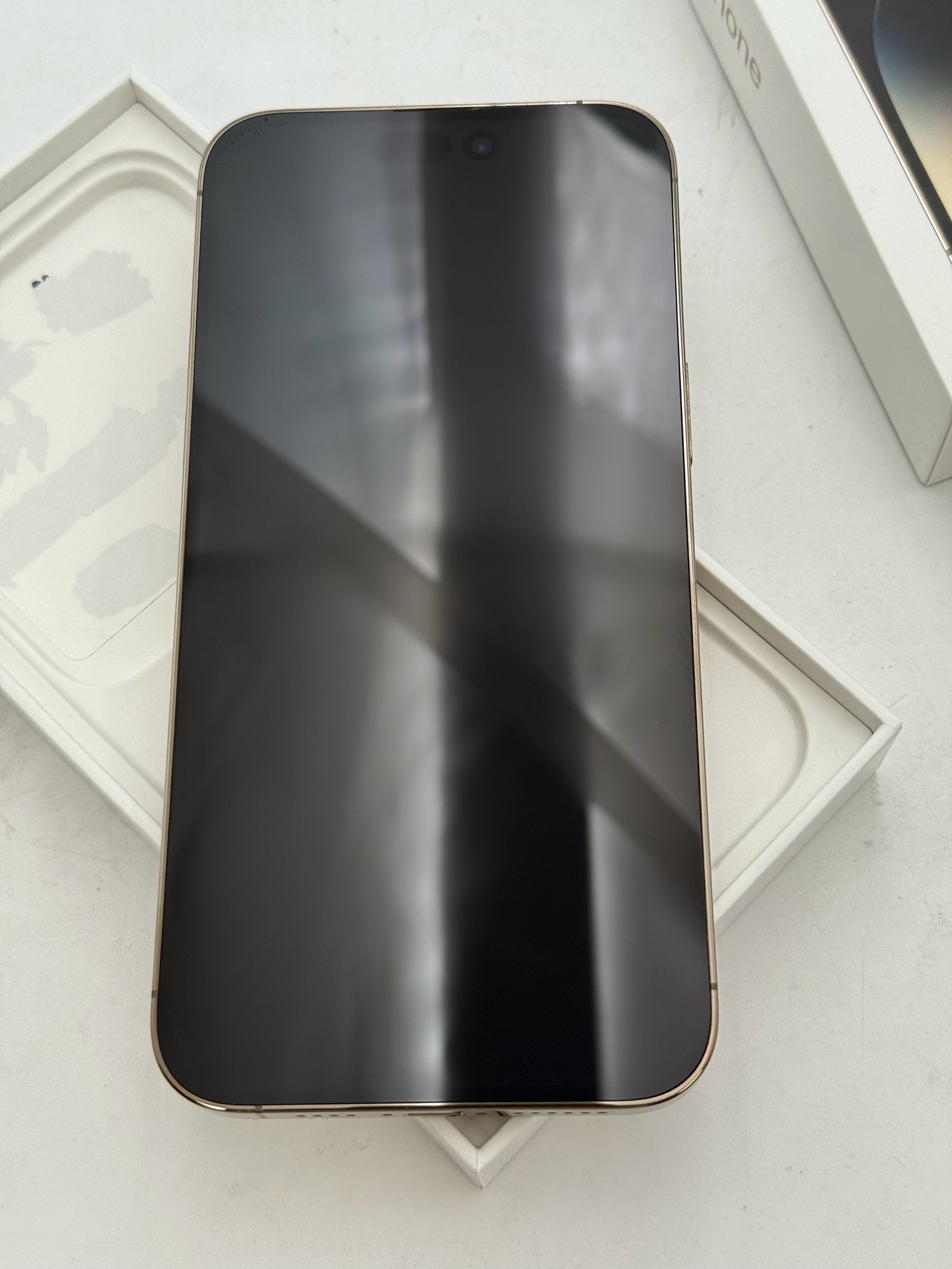 14ProMax 外观93 国行双卡 256 金色 原盒 全原无拆 小靓机 256G黄金内存 A16芯片性能强悍 6.7寸高刷大屏 视觉极佳 价优出 电池82 价格:4250