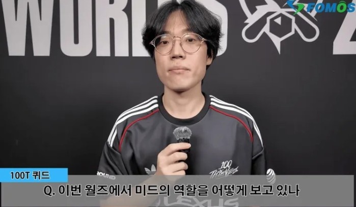 直播吧10月15日讯2025英雄联盟全球总决赛瑞士轮第一天BLG不敌100T,赛后100T中单Quid接受韩媒FOMOS专访;