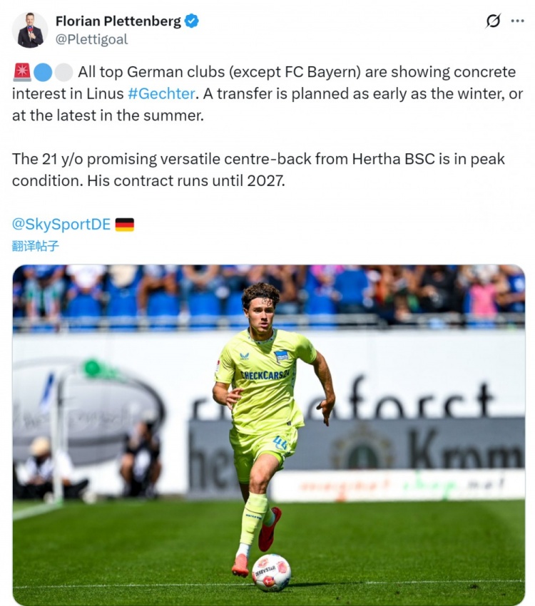 盖赫特身高1米91,他与柏林赫塔的合同2027年到期,德转身价250万欧元。