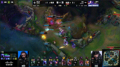 虎扑10月15日讯T1对阵FLY首局,T1抱团rush掉大龙,Oner猴子逃生成功T1打出1换1后撤退
