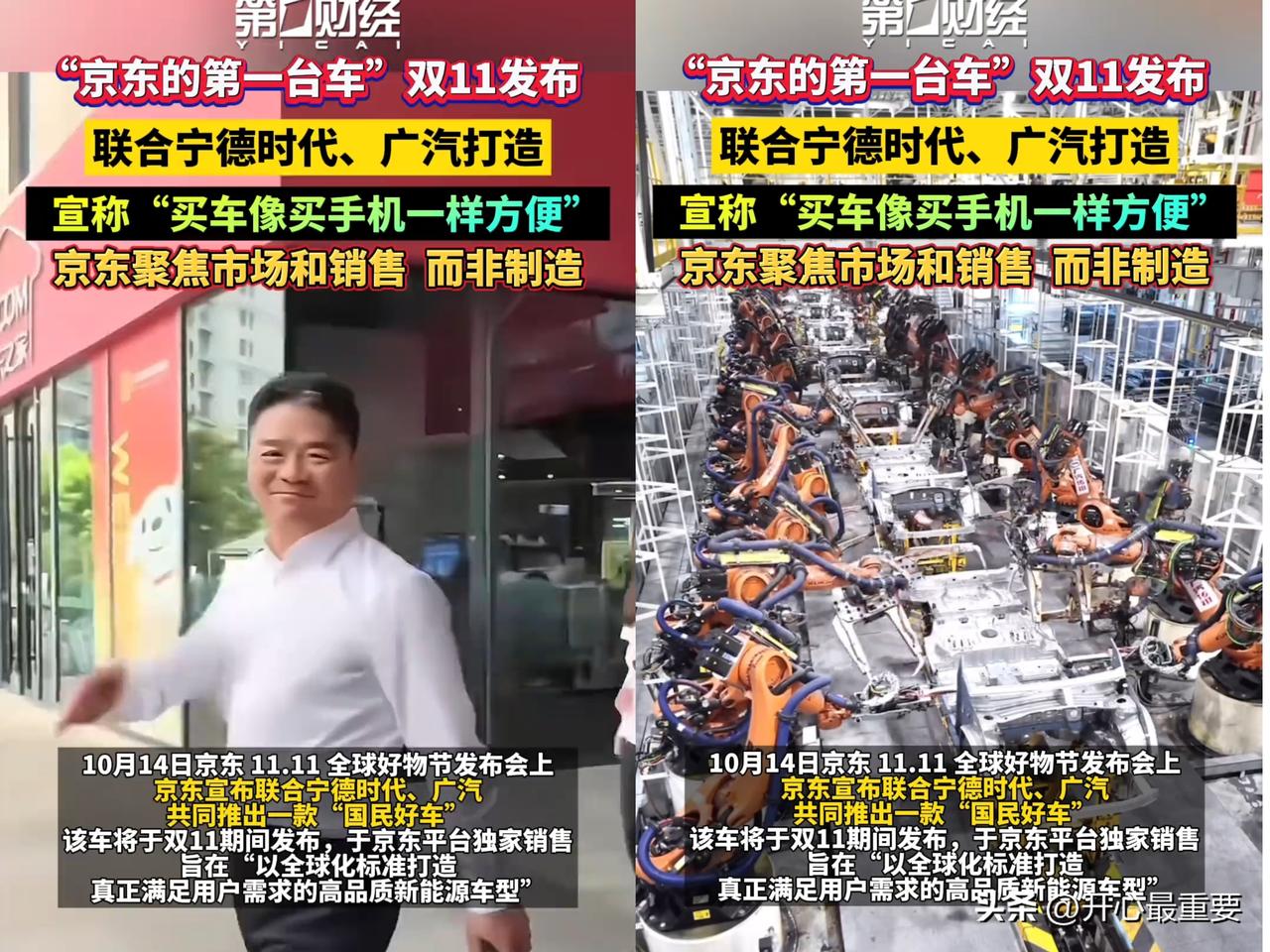 刘强东,为啥就突然下场造车? 原因很简单, 不是因为他想盲目跟风,而是因为 他的京东手握几亿的用户数据, 顺带还能打通“造-卖-服”的全链条! 10月14号京东双11开放日一官宣,和宁德时代、广汽联手搞“国民好车”的消息就刷爆朋友圈,好多人以为京东要跟风造车,结果人家直接撇清:不沾制造!其实这就是京东玩熟了的“反向定制”——先扒拉平台几亿用户的数据,摸清大家想要啥车,再让广汽照着造,宁德时代给配上好电池,自己则攥紧销售和服务的主动权。 要知道现在造车可不是闹着玩的,小米光召回SU7就亏了2.3亿,高合停摆、极越解散的例子就在眼前。京东手里握着2234亿现金,还有近3000家养车门店,根本没必要去踩重资产的坑。更绝的是,人家早注册了“Joyrobotaxi”商标,打算把自动驾驶出租车变成“移动快递站”,以后坐车就能取快递,这哪是卖车,明明是在搭未来出行的生态! 11月9号这款车就要亮相了,在新能源渗透率超50%的市场里,京东靠数据精准戳中用户需求,再用全链条服务锁客,这思路说不定真能撕开一条新口子。 你们觉得京东这波“借船出海”能成吗?各位读者你们怎么看?欢迎评论区讨论。