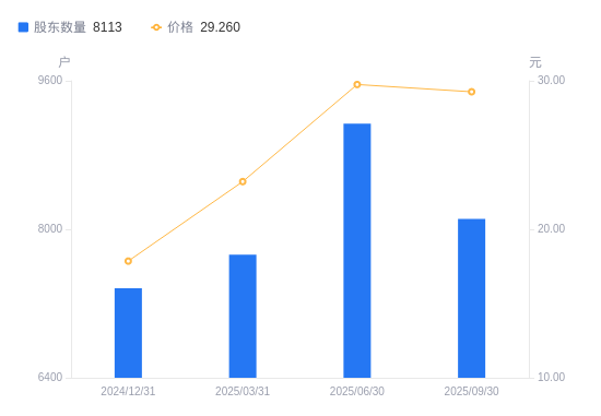 日期A股户数(户)流通A股户均持股数(股)户均持股市值(万元)2025-09-3081137343.3621.492025-06-3091386519.6619.402025-03-3177262771.636.432024-12-3173642829.395.052024-09-3075572757.135.052024-06-3075272787.124.882024-03-3191082303.324.062023-12-3186002431.095.402023-09-3094602210.085.002023-06-30119221753.684.22