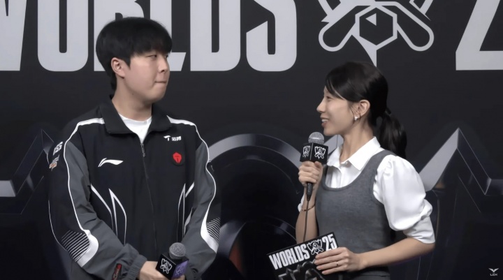 直播吧10月15日讯 2025英雄联盟全球总决赛瑞士轮第一天TES战胜G2,赛后TES打野Kanavi选手接受LCK流专访。