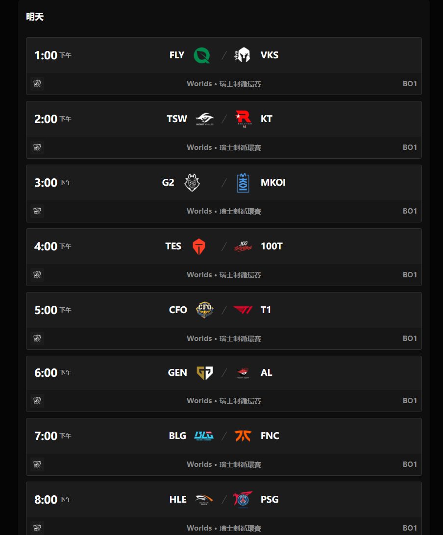 虎扑10月15日讯2025LOL全球总决赛瑞士轮次日赛程在LOL官网更新,具体如下: