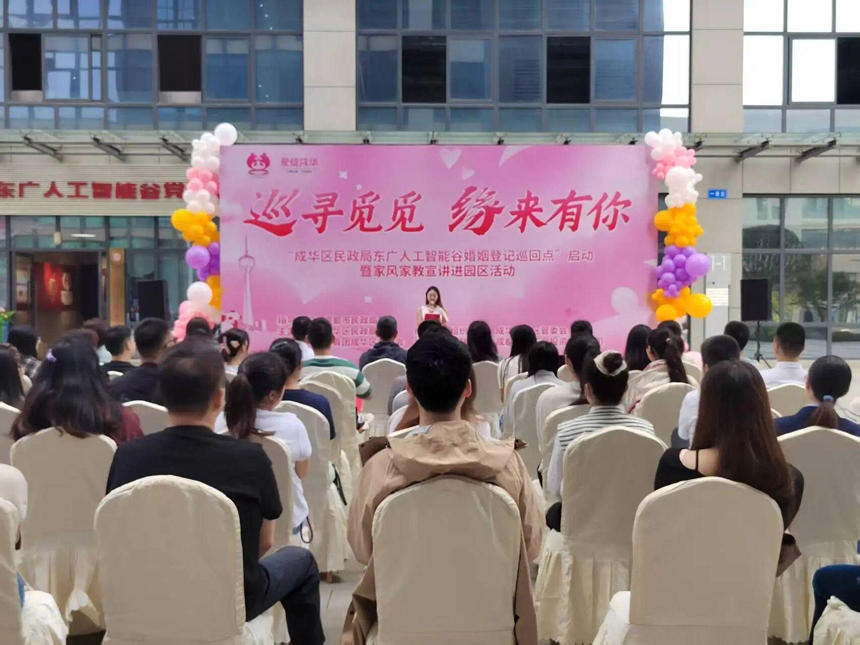 当天,四川省首个产业园区婚姻登记巡回点——“成华区民政局东广人工智能谷婚姻登记巡回点”启用。该巡回点创新将婚姻登记服务嵌入产业园区,为园区青年打造“就近办、便捷办”的便民体验,不仅推动产业园区民生服务品质再升级,更以“喜事近在身边”的贴心服务,为成都“立园满园”行动提供民生支撑。