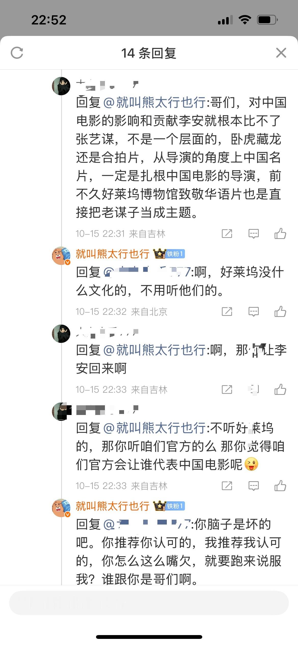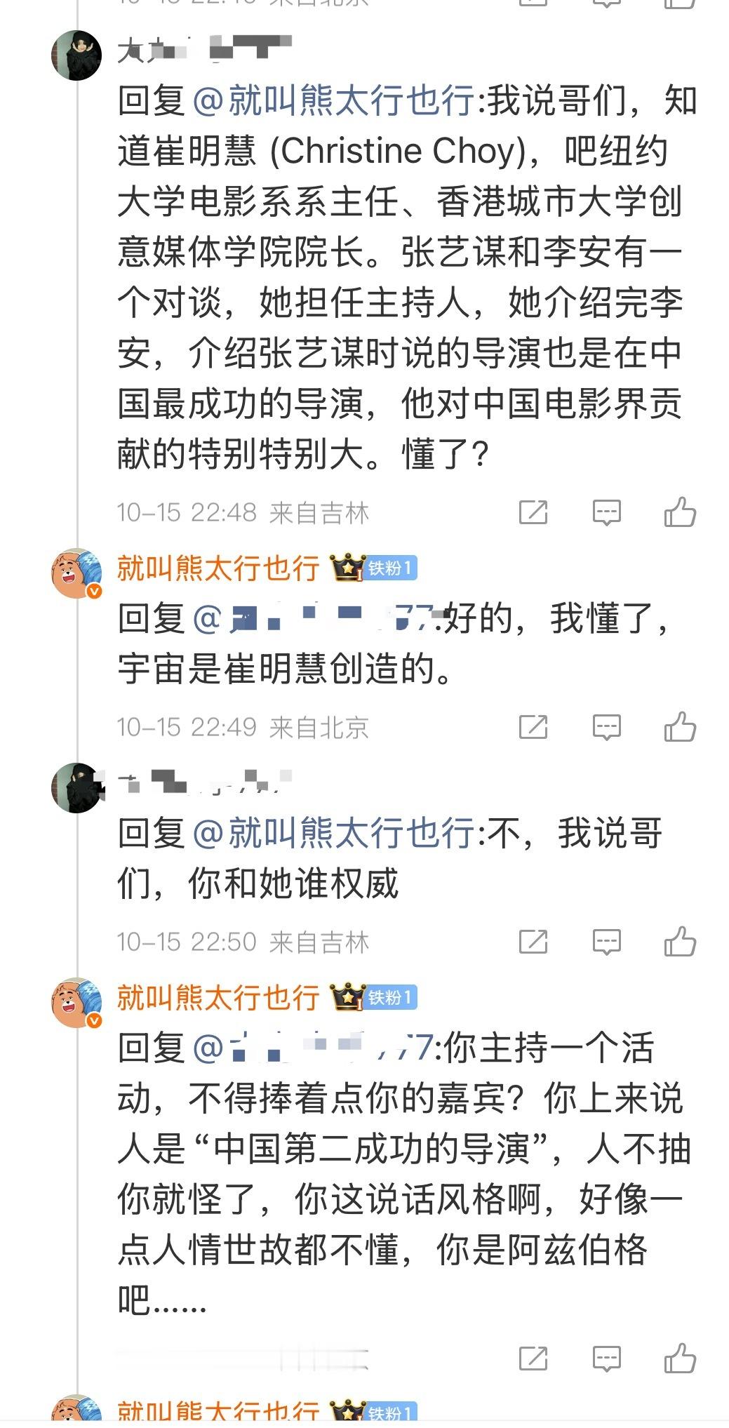 第一次吵架吵到不好意思损他了。这位网友实在是非常真诚而笨拙地喜欢张导,这种感情,