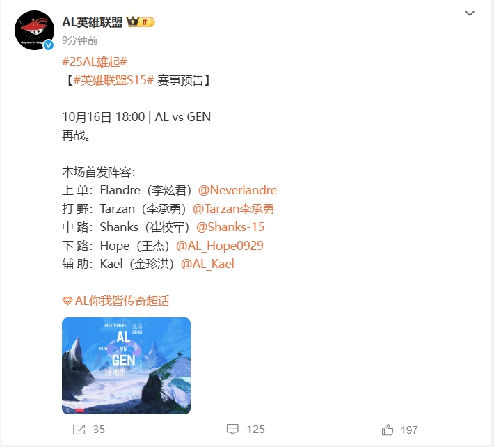 10月16日18:00|ALvsGEN《再战》!