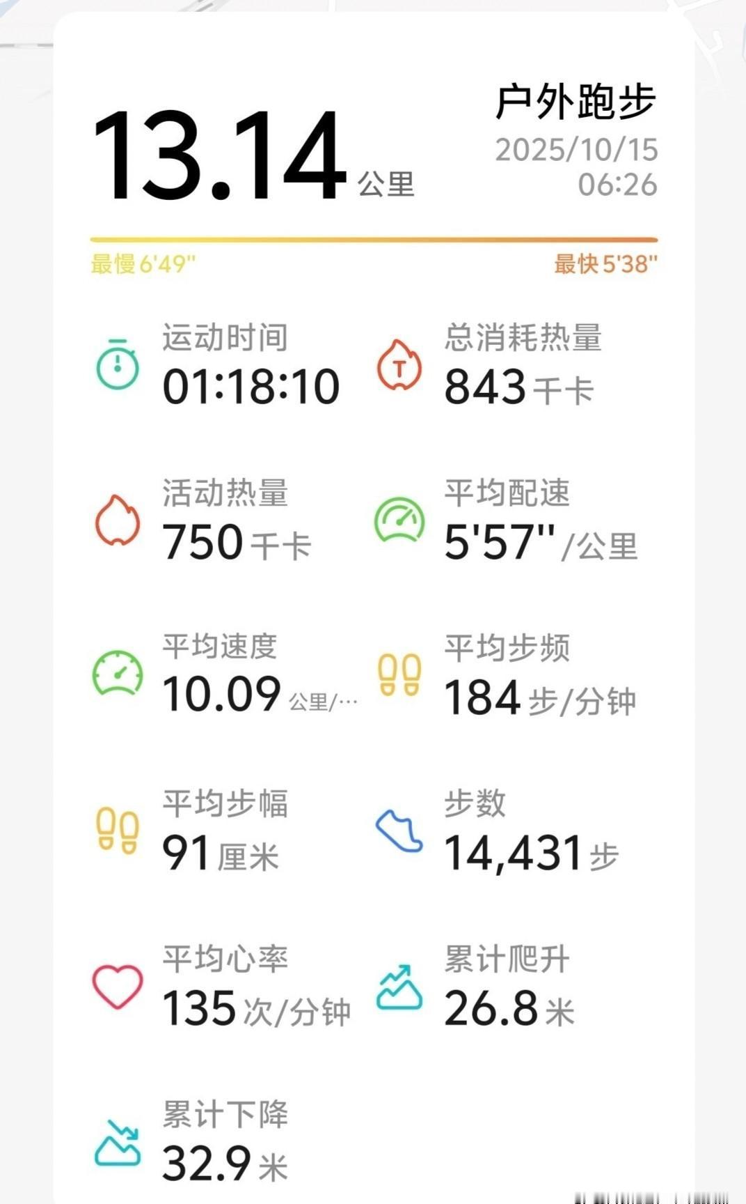 13.14公里,心率135,没喘匀乎就跑完了。 不是拼命,是真会跑。 别人跑13公里心率飙到170,他135还像遛弯。 不是天赋,是懂节奏。 有氧不是累到吐,是让身体自己往前走。 触地270毫秒,跳得比别人低,摆得比别人稳。 90%的人跑得像踩高跷,他像踩在云上。 省力,才跑得远。 国家数据说,20-39岁常跑的人里,不到12个能这样跑。 他不是在打卡“一生一世”,是在悄悄练命根子——有氧底子。 北体大刚出的训练模板,拿他当标准答案。 不是玄学,是科学认了。 每周来两次这样的跑,不用加量,不用吃药, 半年后你再看,5公里不喘,10公里不虚, 半马? 不过是顺手的事。 跑得慢,不是退步。 是把路,走成了自己的节奏。