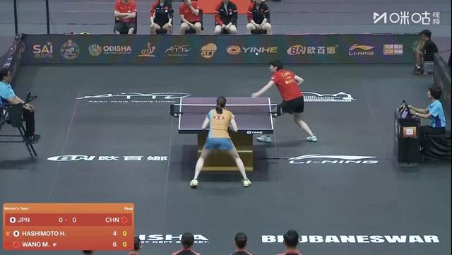 无论日本队如何变换阵型,面对强大的中国队都无法起到田忌赛马的效果。一度被称为“国乒克星”的桥本帆乃香被安排最先出战,但她并未给王曼昱制造太大威胁。这位现役最强削球手虽然本周期击败过11位国乒女将,但在孙颖莎和王曼昱面前没有胜算。尽管桥本以12比10先下一城,但对其打法毫不畏惧的王曼昱以11比3、11比6、11比3连胜三局,拿下第一分。