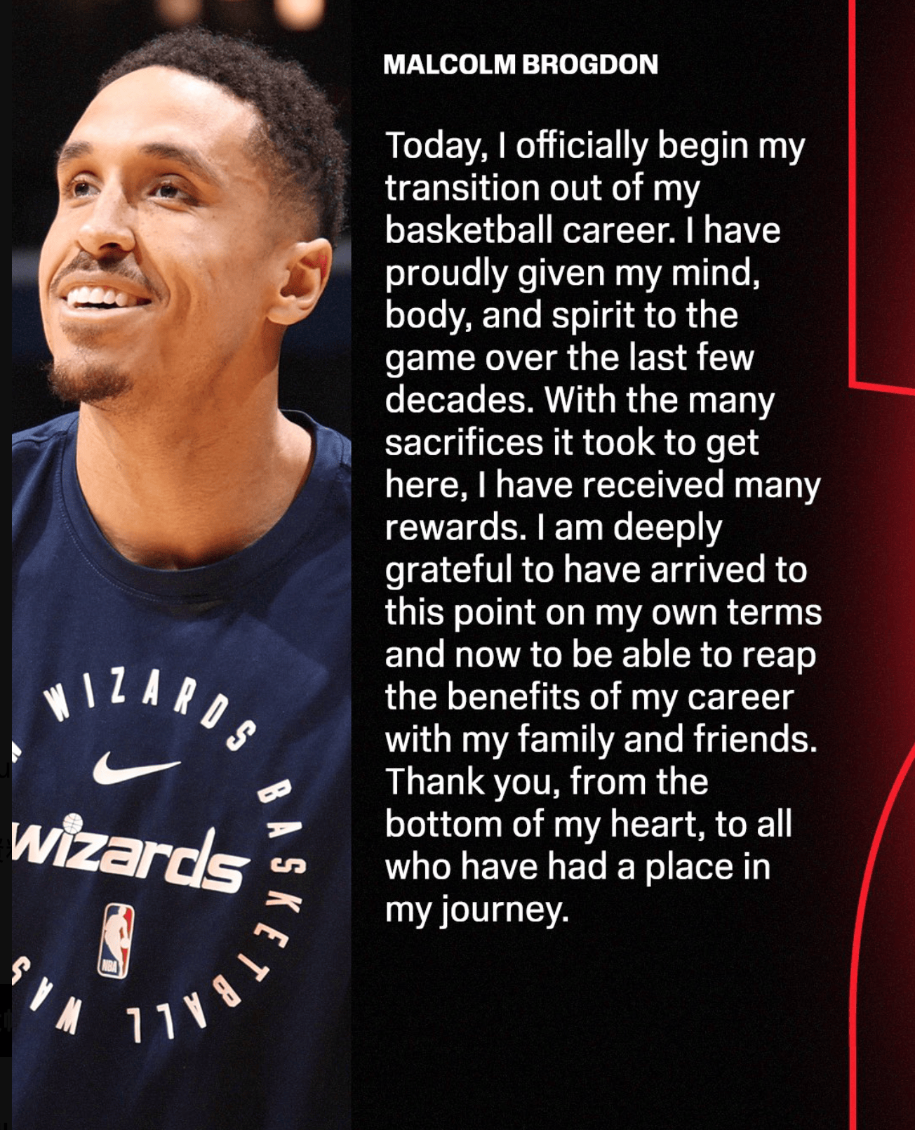 虎扑10月16日讯根据之前报道,尼克斯后卫马尔科姆-布罗格登宣布退役。