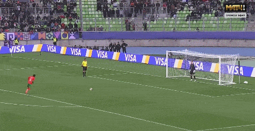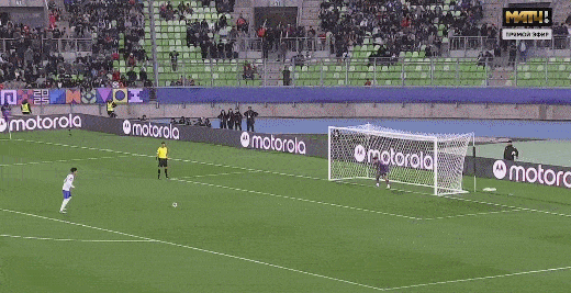 125'鲍乌坦科伊主罚点球,皮球击中左侧立柱弹出