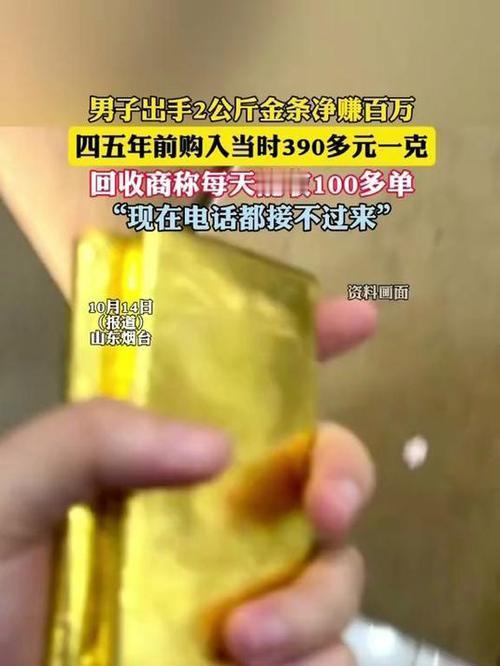 2025年10月15日,山东烟台一男子凭借精准投资眼光,将四五年前以390元/克购入的2公斤银行金条出手,以当前1200元/克以上的市场价变现,净赚超100万元。此案例印证黄金投资价值,回收商透露近期日均接单破百,凸显市场对实物黄金的旺盛需求。黄金价值分析 黄金保值又增值 投资金条金价 ?