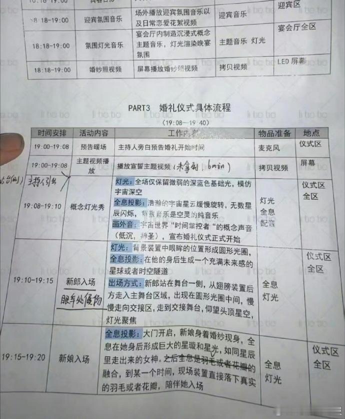 黄子韬徐艺洋婚礼流程表包含从准备到结束的完整流程,每个环节的时间与内容设计,都体现出对婚礼细节的把控。黄子韬徐艺洋的婚礼流程表黄子韬徐艺洋婚礼流程表