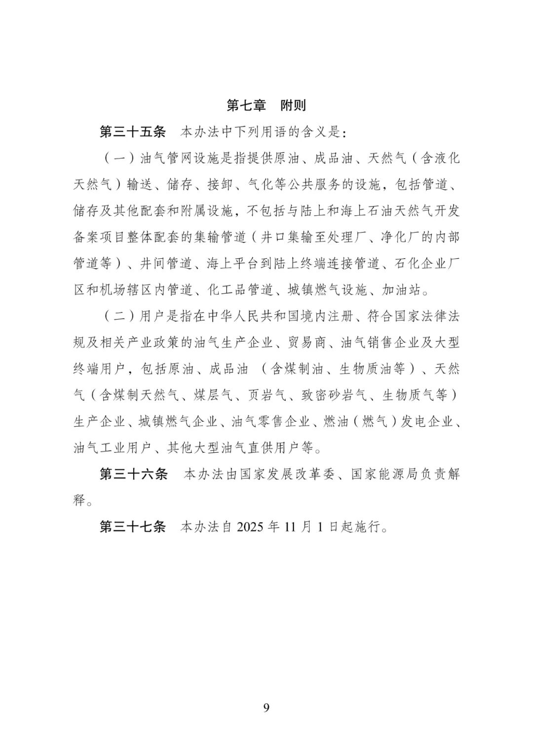 《油气管网设施公平开放监管办法》已经2025年9月26日第23次委务会议审议通过,现予公布,自2025年11月1日起施行。